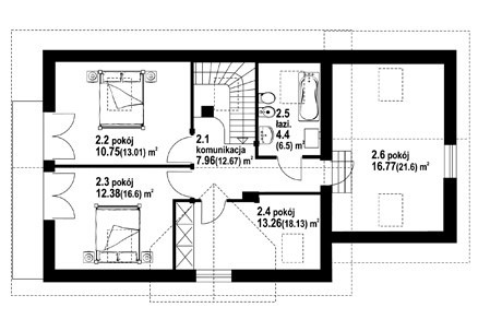 - poddasze: 3 sypialnie, mniejszy pokój lub garderoba, łazienka.