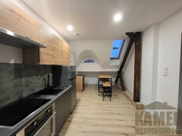 Jednopokojowe mieszkanie z aneksem kuchennym o powierzchni 36 m2 znajduje się na 3 piętrze w 3-piętrowym, przedwojennym budynku w Centrum Opola. Lokal to adaptacja strychu w stanie wykończonym.