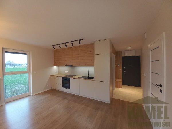 Mieszkanie jest całkiem nowe, nieużytkowane. Ściany oraz sufity pokryte gładzią gipsową, malowane. Na podłodze wysokiej klasy panele, listwy przypodłogowe MDF. Drzwi wewnętrzne bezprzylgowe (z ukrytymi zawiasami). Łazienka wykafelkowana, z kabiną prysznicową.