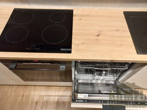 - zabudowa kuchenna, wykonana przez stolarza, na wymiar wraz ze sprzętem AGD (zmywarka 60 BOSCH, płyta indukcyjna i piekarnik BOSCH, lodówka oraz okap SAMSUNG, zlewozmywak);
