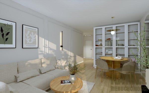 Mieszkanie jest w stanie idealnym, przeszło generalny remont. Wymieniono wszystkie instalacje łącznie z pionami. Ściany i sufity pokryte gładzią, malowane; dodatkowo zdobione sztukaterią i tapetami. Na podłodze wysokiej klasy panele. Nowe drzwi wejściowe oraz wewnętrzne, wymienione razem z futrynami. Łazienka wykończona płytkami, z kabiną prysznicową, podwieszanym wc oraz szafką z umywalką. Okna PCV. W pokojach jest instalacja rtv oraz internetowa.