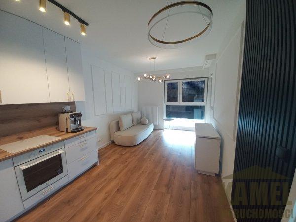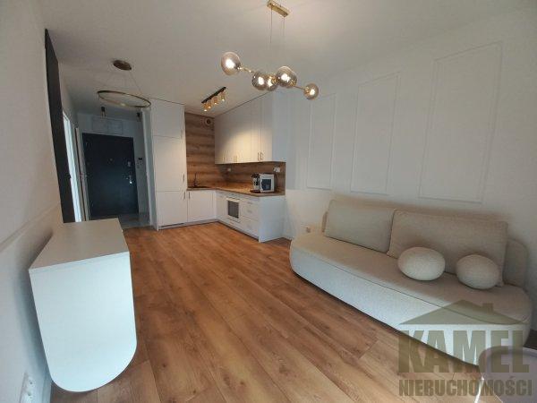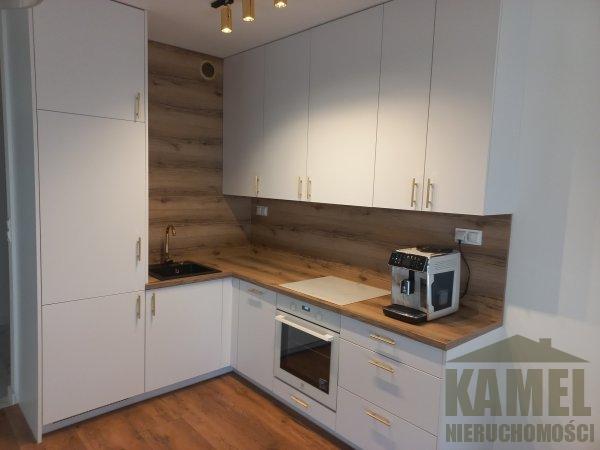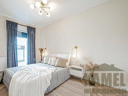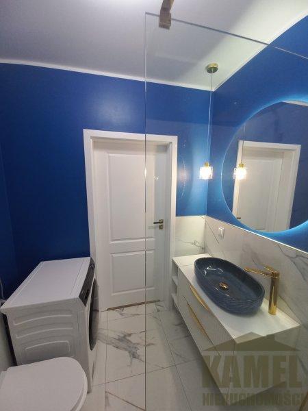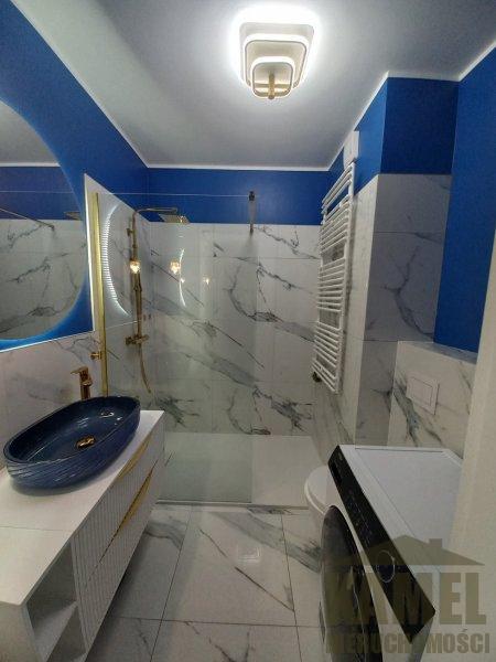 Mieszkanie jest całkiem nowe. Ściany oraz sufity pokryte gładzią gipsową, malowane. Na podłodze w salonie oraz sypialni wysokiej klasy panele. Łazienka wykafelkowana, z kabiną prysznicową.