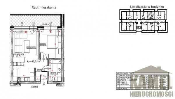 Mieszkanie w standardzie deweloperskim. Ściany i sufity pokryte tynkiem gipsowym, maszynowym. Na podłodze wylewka betonowa do indywidualnego wykończenia. Instalacja elektryczna wyposażona w gniazdka i włączniki, we wszystkich pomieszczeniach. Grzejniki z termostatami. Drzwi wejściowe do mieszkań antywłamaniowe klasy C, domofon. Okna PCV z roletami zewnętrznymi sterowanymi elektrycznie. Balkon o powierzchni 10,03 m2 wykafelkowany, z balustradą szklaną.