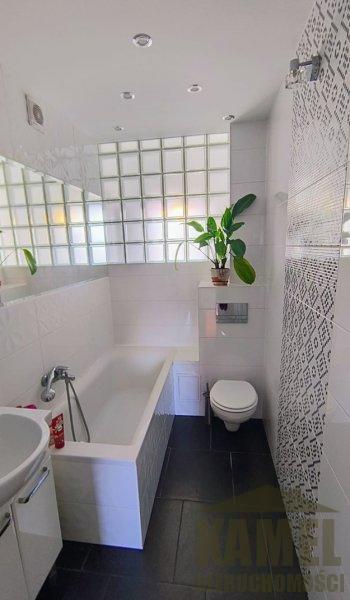 Mieszkanie jest rozkładowe, dwustronne. Budynek po termomodernizacji. Jasna i ustawna kuchnia położona jest od strony podwórza. Przestronne pokoje znajdują się od strony podwórza jak i ulicy. Łazienka z WC, dodatkowe pomieszczenie gospodarcze (np. pralnia). W cenie mieszkania wyposażenie kuchni i łazienki: meble w zabudowie,okap, kuchenka gazowa, lodówka.