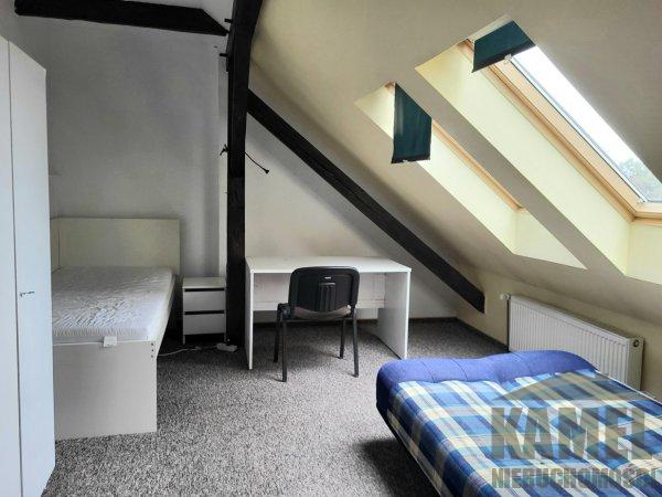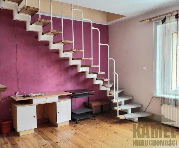 Mieszkanie jest rozkładowe, dwustronne, dwupoziomowe z wystawą wschód-zachód. Wejście na drugi poziom z salonu. Na pierwszym poziomie znajduje się osobna kuchnia, łazienka z oknem, przedpokój, sypialnia i salon z kominkiem. Na drugim poziomie dwie sypialnie ze skosami i oknami połaciowymi. Mieszkanie wymaga remontu. Ogrzewanie gazowe, instalacja c.o. i ciepłej wody wykonane z miedzi. Instalacja elektryczna w części wymieniona. Do mieszkanie przynależy piwnica. Bezpłatne miejsce parkingowe. Budynek po termomodernizacji.