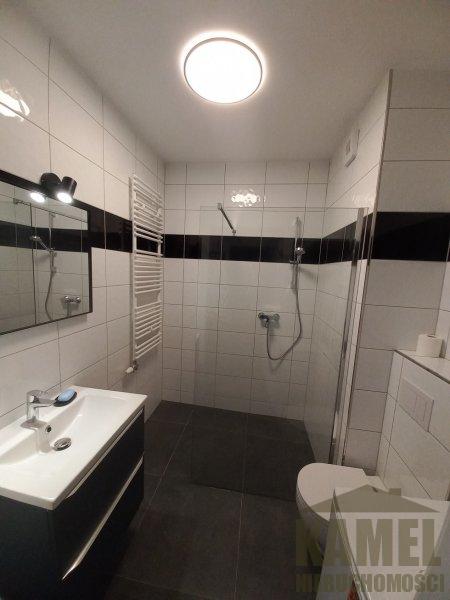 - łazienka: kabina prysznicowa, szafka z umywalką, pralka, podwieszane wc.